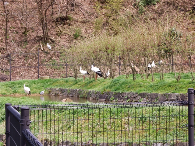 僕はずっとコウノトリの郷公園って(ゴルフの打ちっ放しみたいに)、ネットで囲ってあるものだと思いこんでいましたが、まったくネットなんてものはなく、コウノトリは自由に飛んでいました。