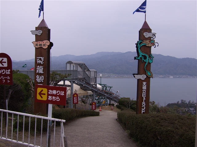 しばらく進むと天橋立の横を通り、直に天橋立ビューランドの看板が見えてきます。