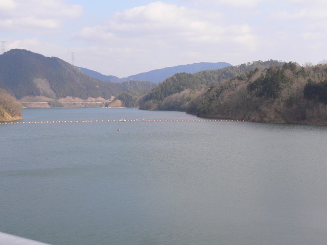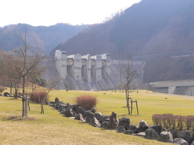 日吉ダムは淀川水系桂川に建設された多目的ダムで、幅438m、高さが70.4mということです。