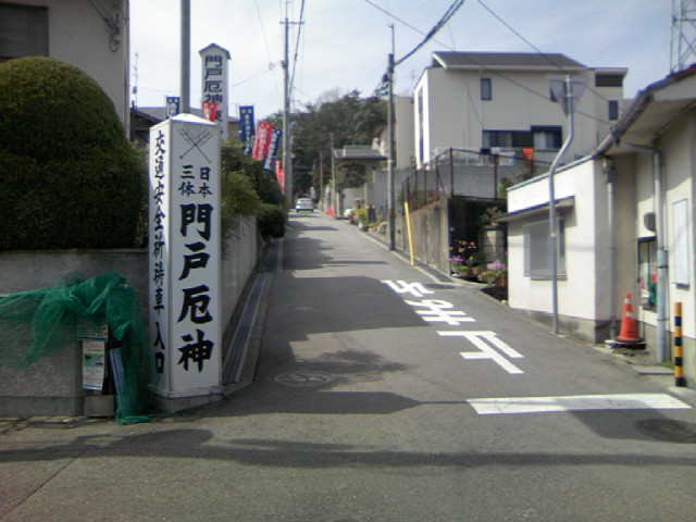 いくらか右往左往して、ようやくファミリーマート近くの駐車場を発見。車を止めて、参道に向かいます。