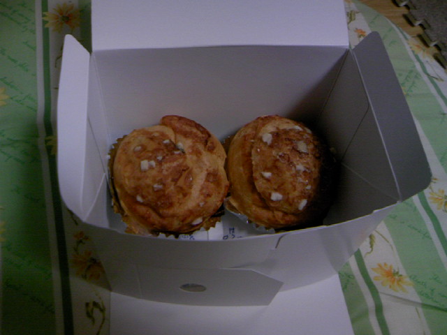 妻が買ってきてくれたのが、カマンベールチーズロールとシュークリームでした。