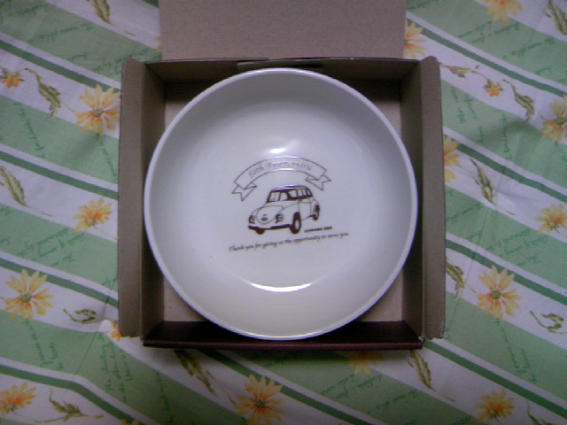 直径は12センチくらいでしょうか。中にはスバル360のイラストがあしらってあって、とても可愛いです(= ^^ =)