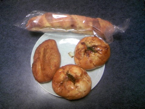 上からミルク棒、左がカレーパン、そして夫婦ともに大好きでおすすめの関西風お好みパン(とかそういう名前だったと思います^-^;)